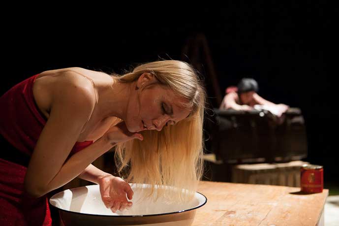 Nina Ikonen está ajustada y vistosa en su papel de rusa extranjera, especialmente en la escena de la puerta, con su propia historia sórdida detrás, pero tan sólo paralela a la vida de la Aliide anciana, verdadero pivote sobre el que bascula toda la obra. Lo mejor ha sido su caracterización de vieja amargada y sus expresivas presencias fantasma cuando recuerda su azarosa vida.