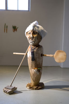 Puuveistoksesi muistuttaa Pääsiäissaarten kaavamaisia moai-veistoksia, mutta myös länsiafrikkalaisten taiteilijoiden kovasta puusta tehtyjä karkeita veistoksia tai jopa Agustín Ibarrolan värikkäitä metsiä. Mitkä ovat sinulle tietoisia vaikutteita tällä alueella?