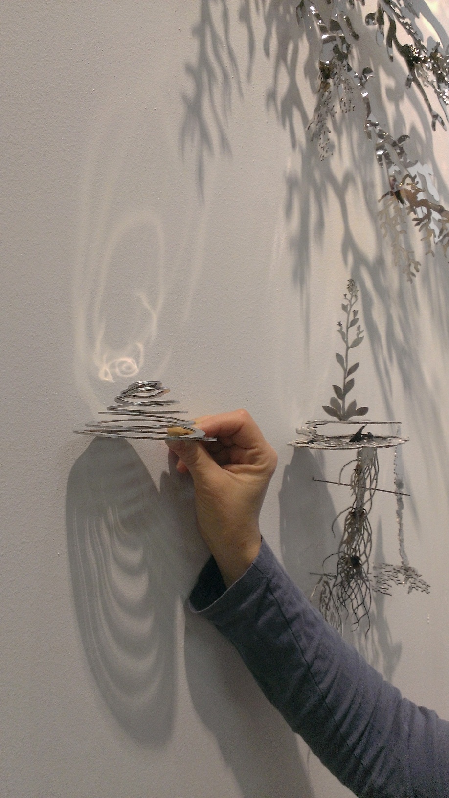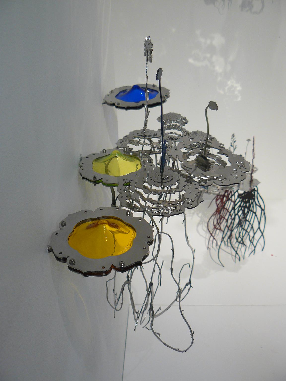 Se trata de una obra de 4'5 m de altura en aluminio pintado y acero, se encuentra al lado de un puente y se puede andar por debajo de ella. Son plantas que están en peligro de extinción en Finlandia y las he “elevado” hasta esa altura para protegerlas.