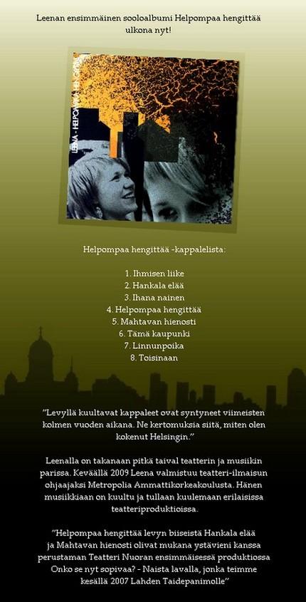 Primer álbum de la vocalista finlandesa Leena Urrio, 2009. Acompañamiento de piano.