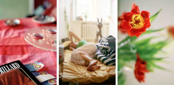 2. En cuanto a las diferencias, mientras Verónica escenifica mujeres diferentes usando su propio cuerpo, tomando una parte activa, participante en la creación, Nanna utiliza naturalezas muertas preparadas, en una suerte de bodegón fotografiado y también durmientes en distintas posturas, con lo que toma una distancia respecto del objeto fotografiado. ¿Esto es así? ¿Por qué esta actitud artística tan diferente?¿Se debe a diferencias culturales, personales o académicas?